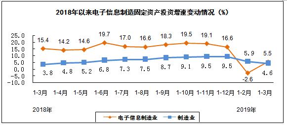 一季度,电子信息制造业固定资产投资同比增长5.5%,扭转了1-2月份同比下降的态势,高于同期制造业投资增速0.9个百分点。